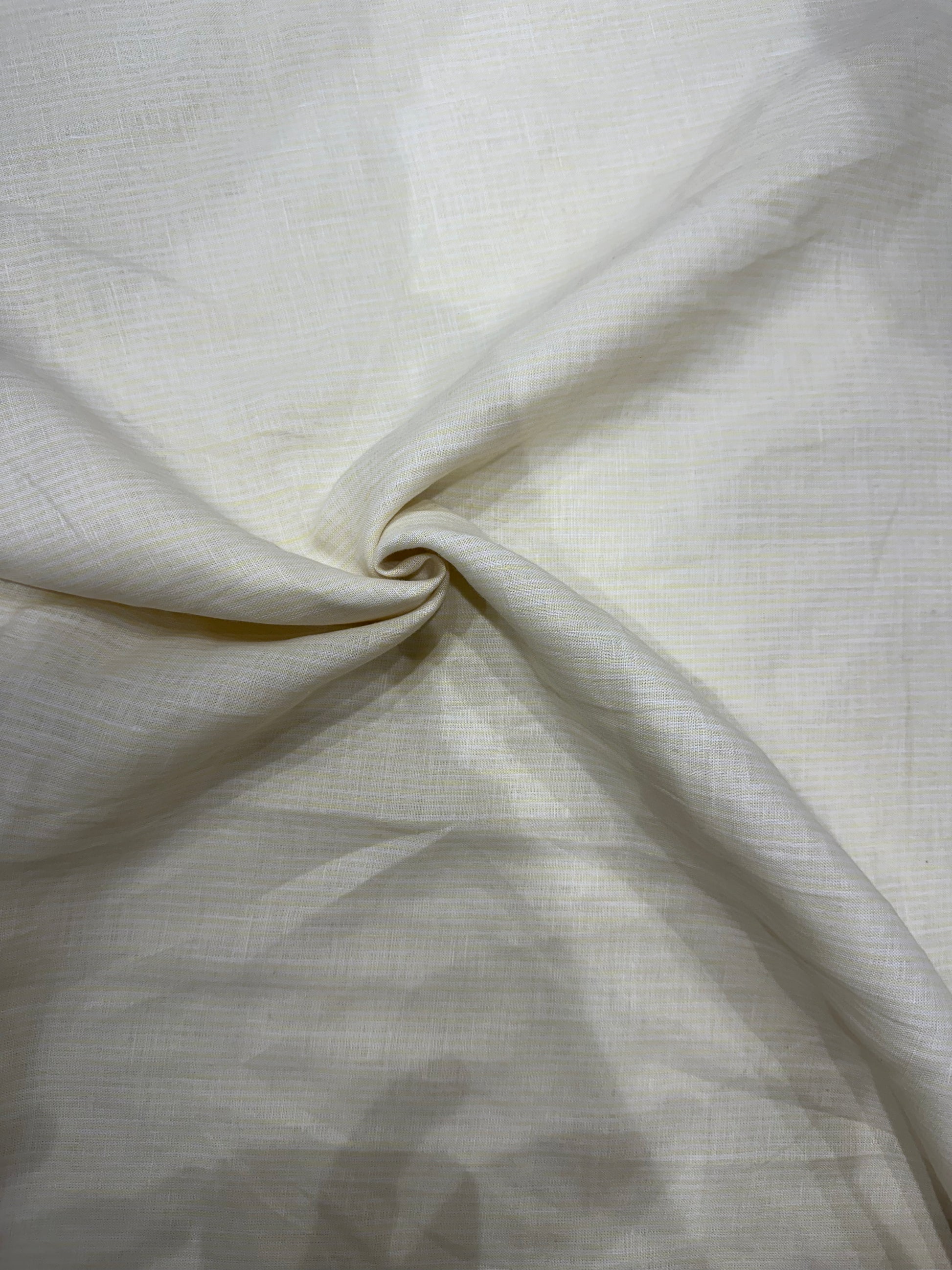 100% शुद्ध लिनन चेक फ़ैब्रिक - सुरुचिपूर्ण ऑफ़-व्हाइट सेल्फ़ टेक्सचर