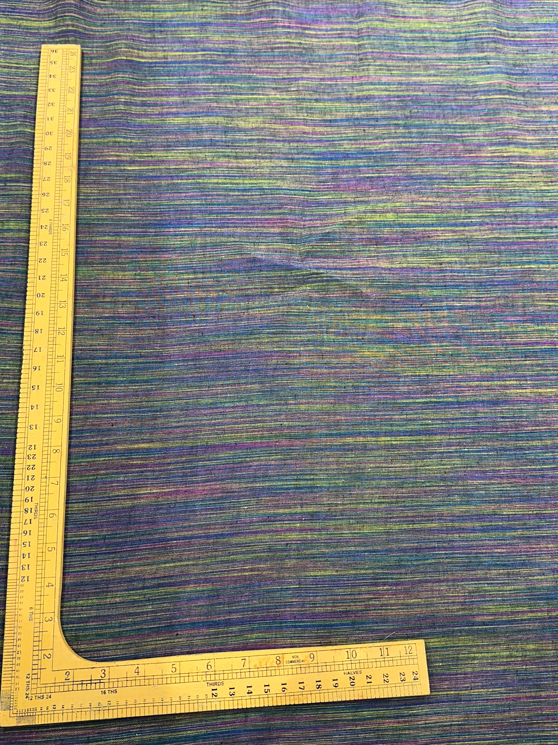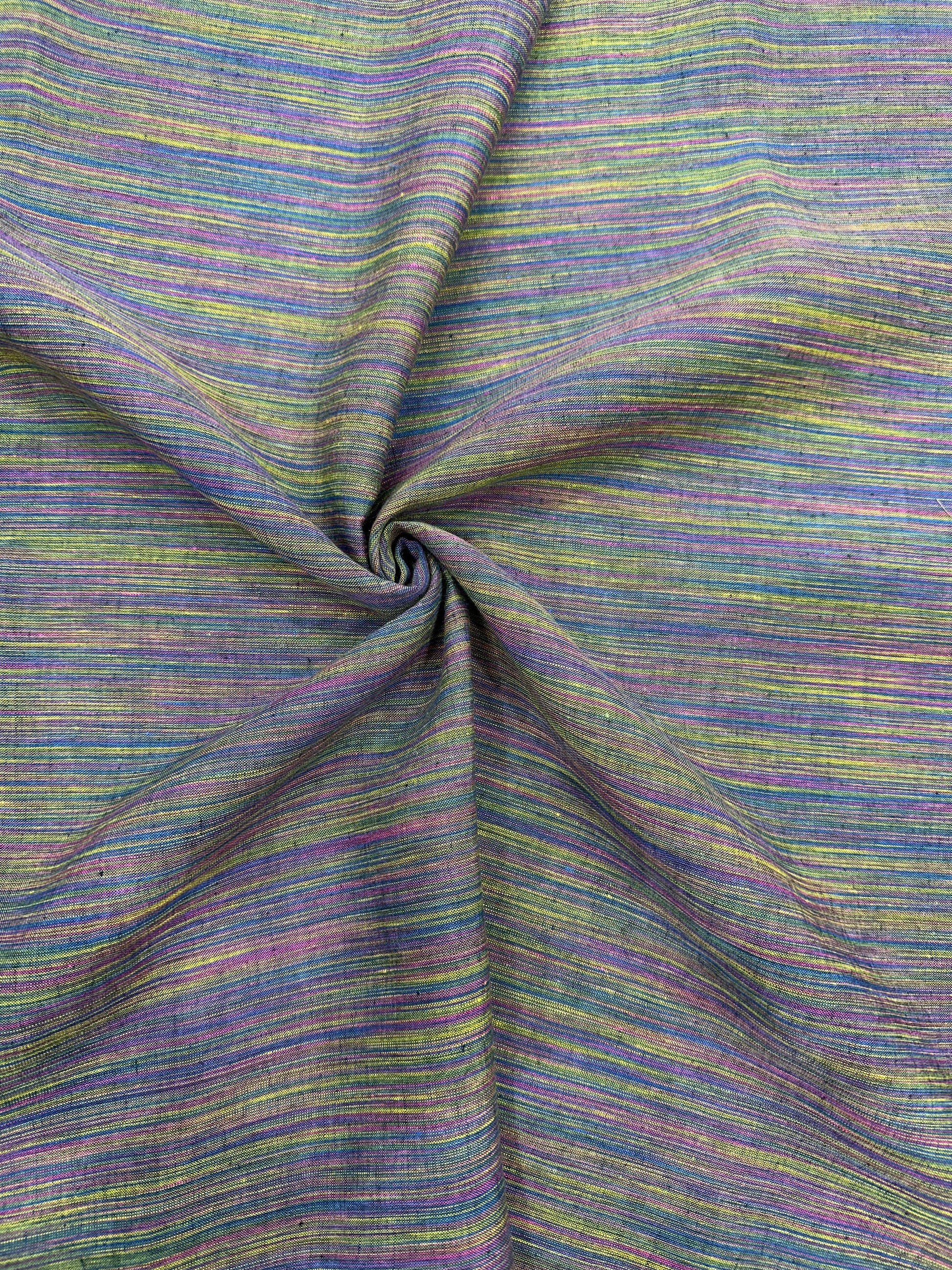 नीले, हरे और बकाइन जैसे सूक्ष्म रंगों का मिश्रण एक मंत्रमुग्ध कर देने वाली दृश्य गहराई पैदा करता है, जो इसे शर्ट, कुर्ते, ड्रेस, स्कार्फ और सुरुचिपूर्ण घरेलू साज-सज्जा के लिए आदर्श बनाता है। हल्का, हवादार और प्राकृतिक बनावट वाला, यह लिनन फ़ैब्रिक शिल्प कौशल और आराम की एक कालातीत अभिव्यक्ति है।