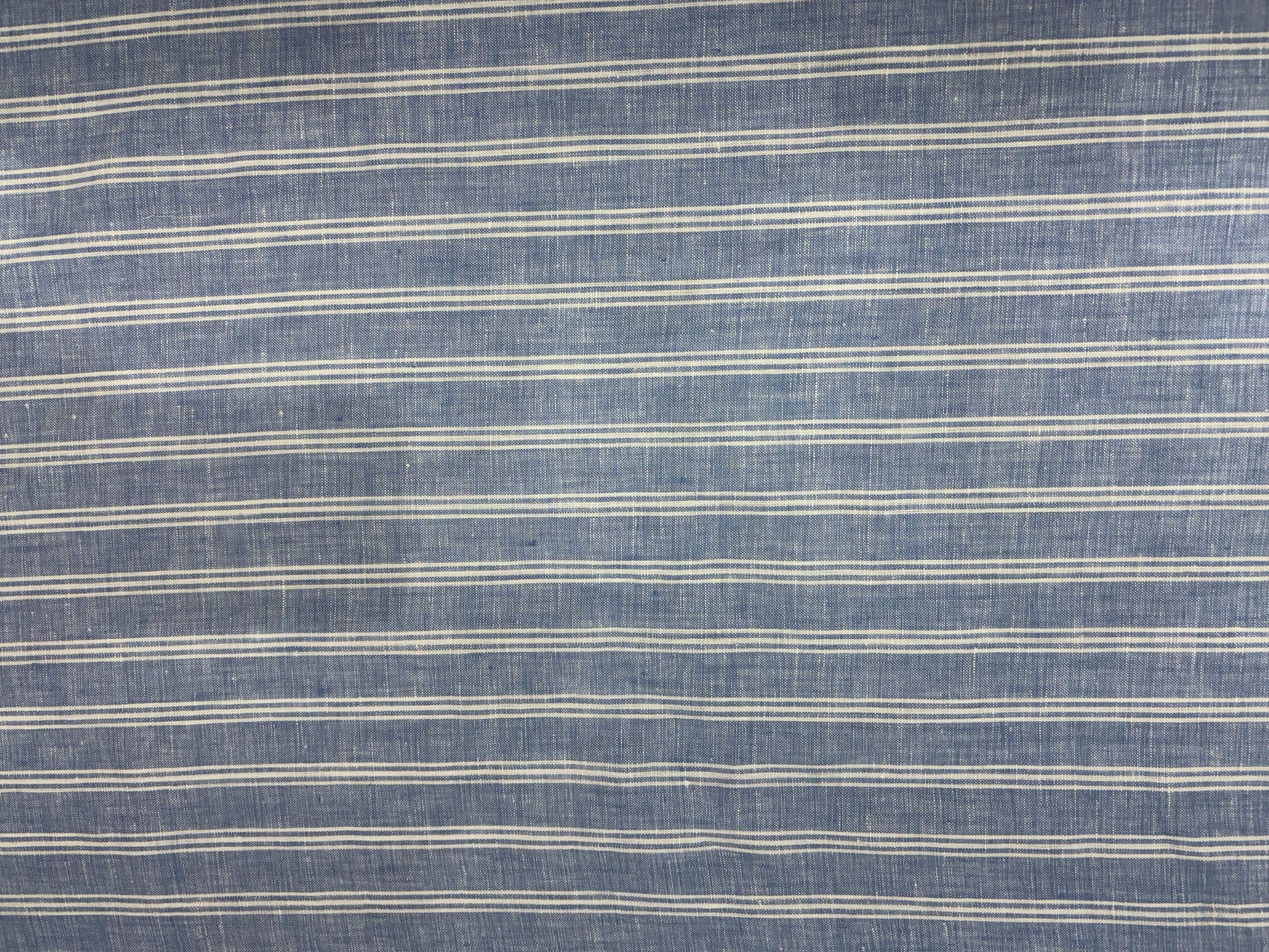 This 100% pure linen striped fabric in a soothing blue base with white horizontal stripes is perfect for timeless, casual, and elegant outfits. Its breathable weave and natural linen texture make it ideal for summer wear while offering durability and comfort. The stripe design adds a classic yet modern touch, making it versatile for various styles.