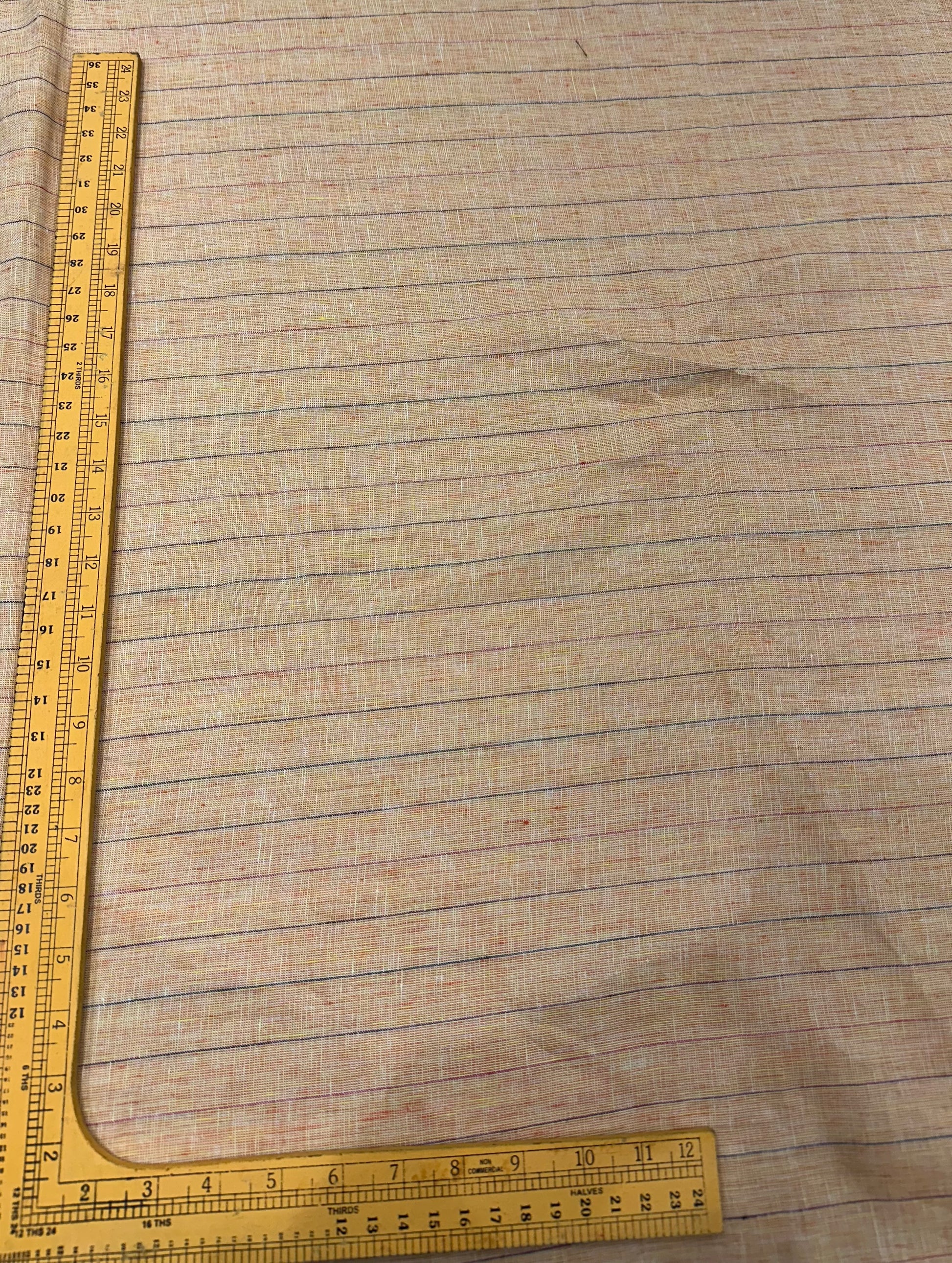 Add timeless sophistication to your wardrobe with our 100% Pure Linen Stripe Fabric in elegant beige tones. Designed with subtle multi-color fine stripes, this fabric blends traditional charm with modern minimalism.