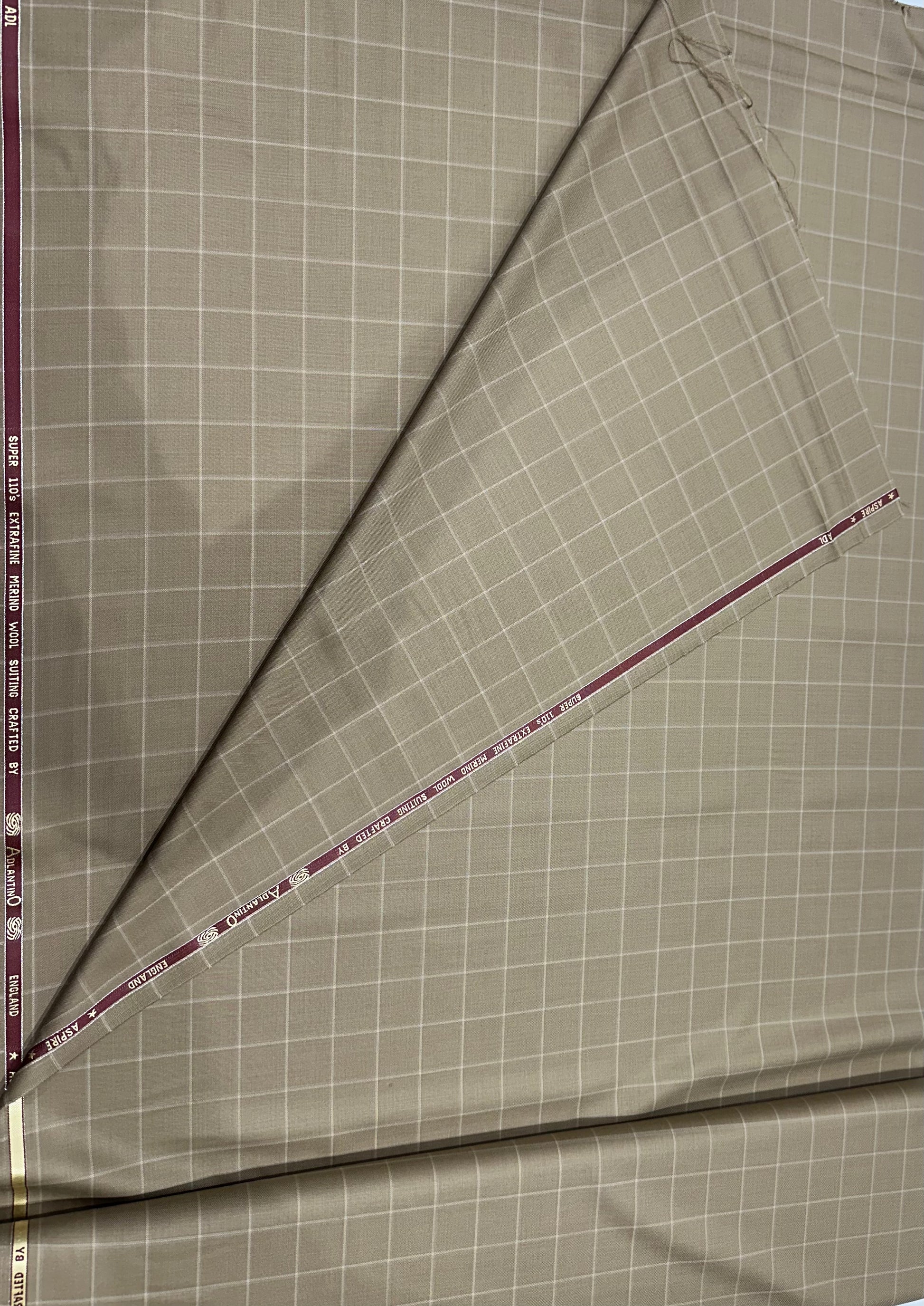 Italian Wool Suiting Fabric – Beige with Windowpane Check