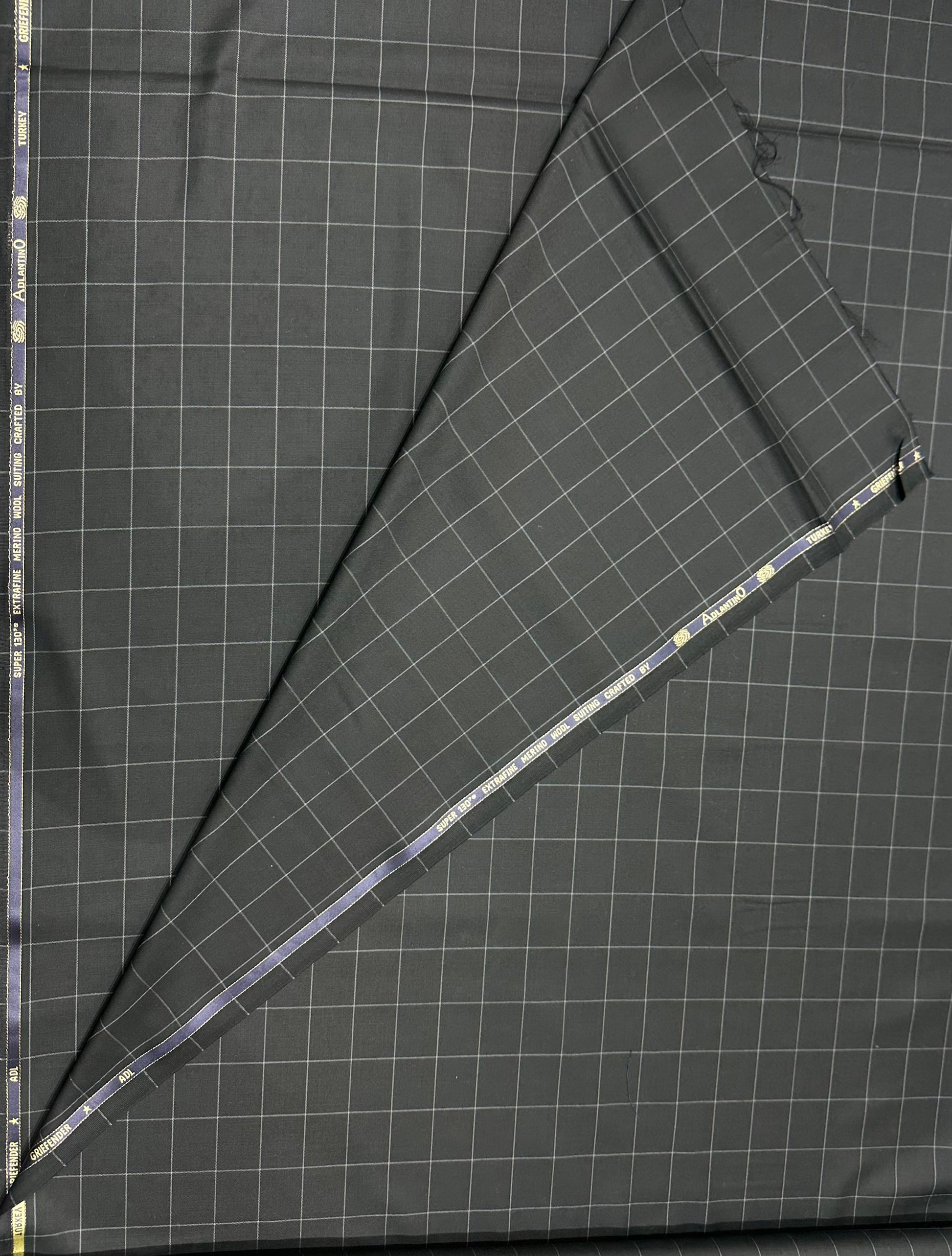 Add a timeless sophistication to your wardrobe with this Italian Wool Suiting Fabric in a classic black windowpane check pattern. Crafted from 100% pure wool, this fabric embodies luxury, breathability, and a smooth drape — perfect for creating refined suits, blazers, and formal separates.