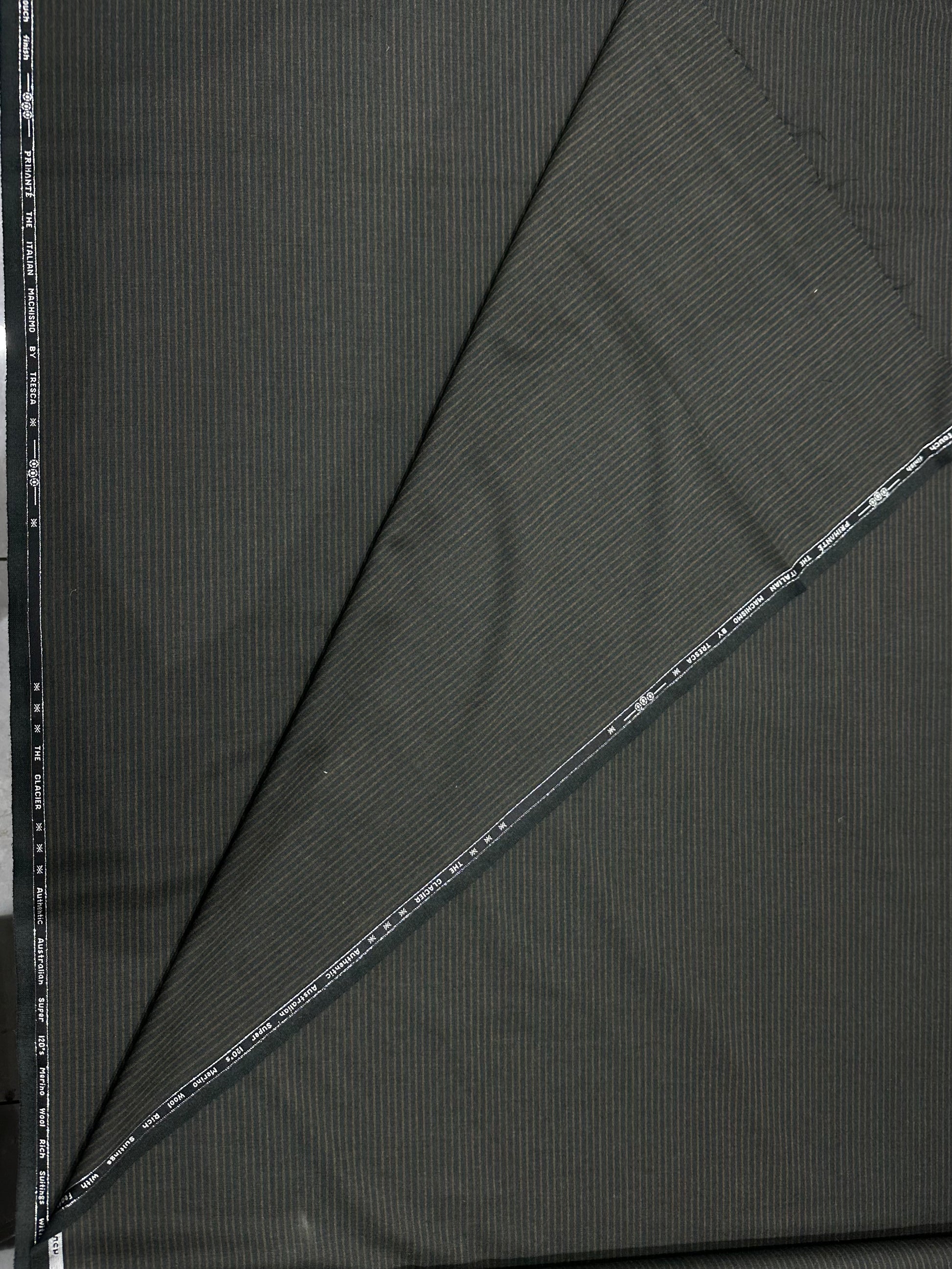 Define your style with sophistication using this Italian Wool Suiting Fabric in an elegant black pinstripe design. Crafted from 100% pure wool, this fabric offers exceptional comfort, breathability, and a refined drape, ideal for tailored suits, blazers, and formal wear.