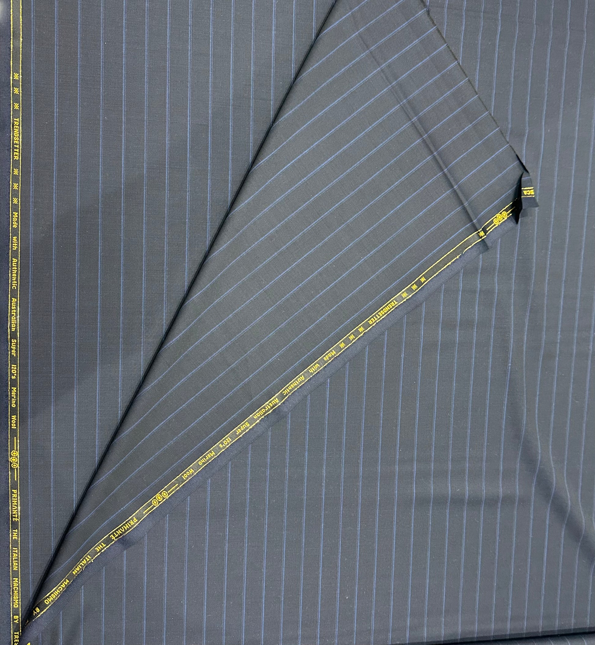 Exude sophistication with this Italian Wool Suiting Fabric in a classic grey tone enhanced by subtle blue pinstripes. Crafted from finest quality pure wool, it offers a luxurious feel, perfect structure, and breathable comfort. The refined pinstripe pattern gives a timeless charm—ideal for creating bespoke business suits, blazers, and formal trousers that make a statement of understated elegance.