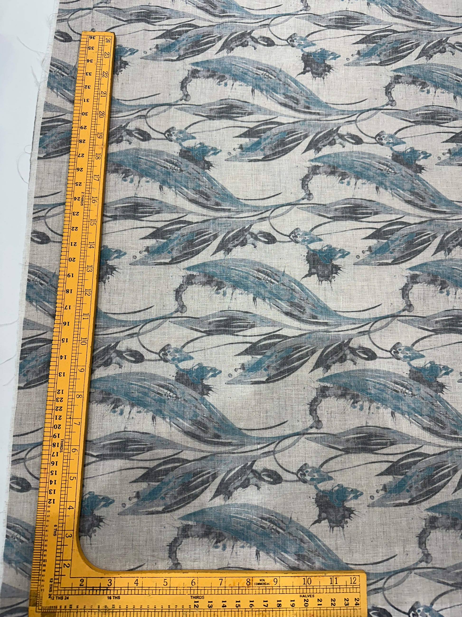 Linen Blend Digital Print Fabric – Blue & Grey Floral Abstract